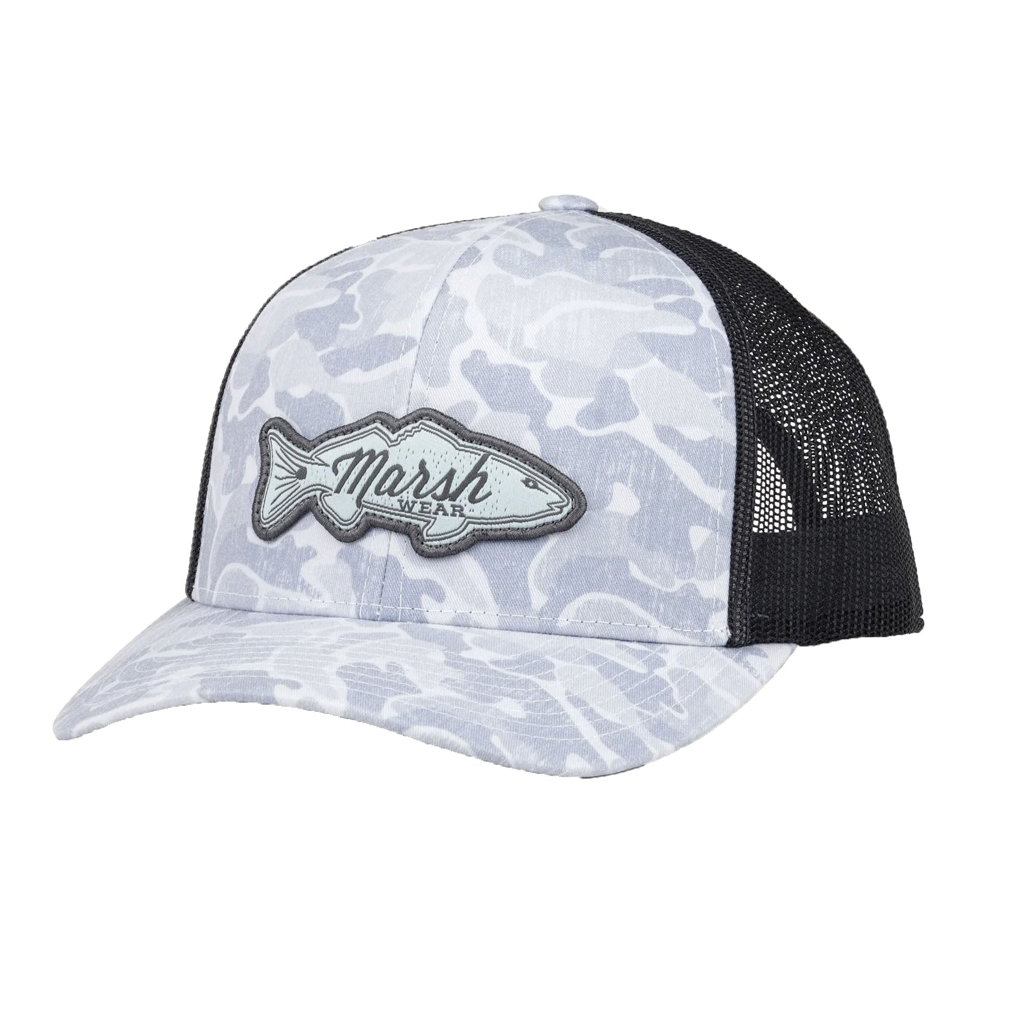 • Marsh Wear Redfish Logo Men's Trucker Hat - Hazy Copahee Camo
