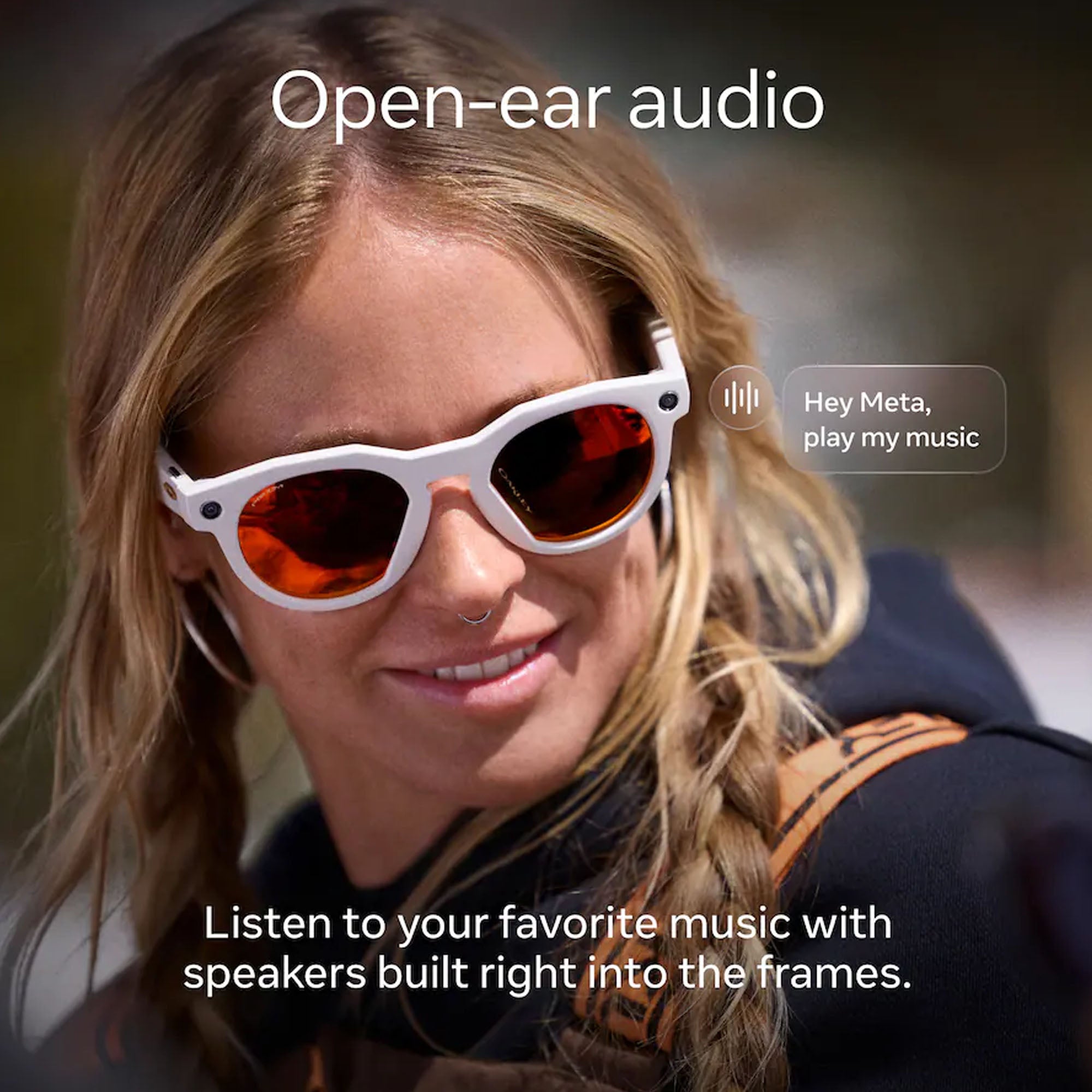 The hands-free 12 MP camera lets you capture all the action as it happens. With just a “Hey Meta” or a press, you can always get the shot.
