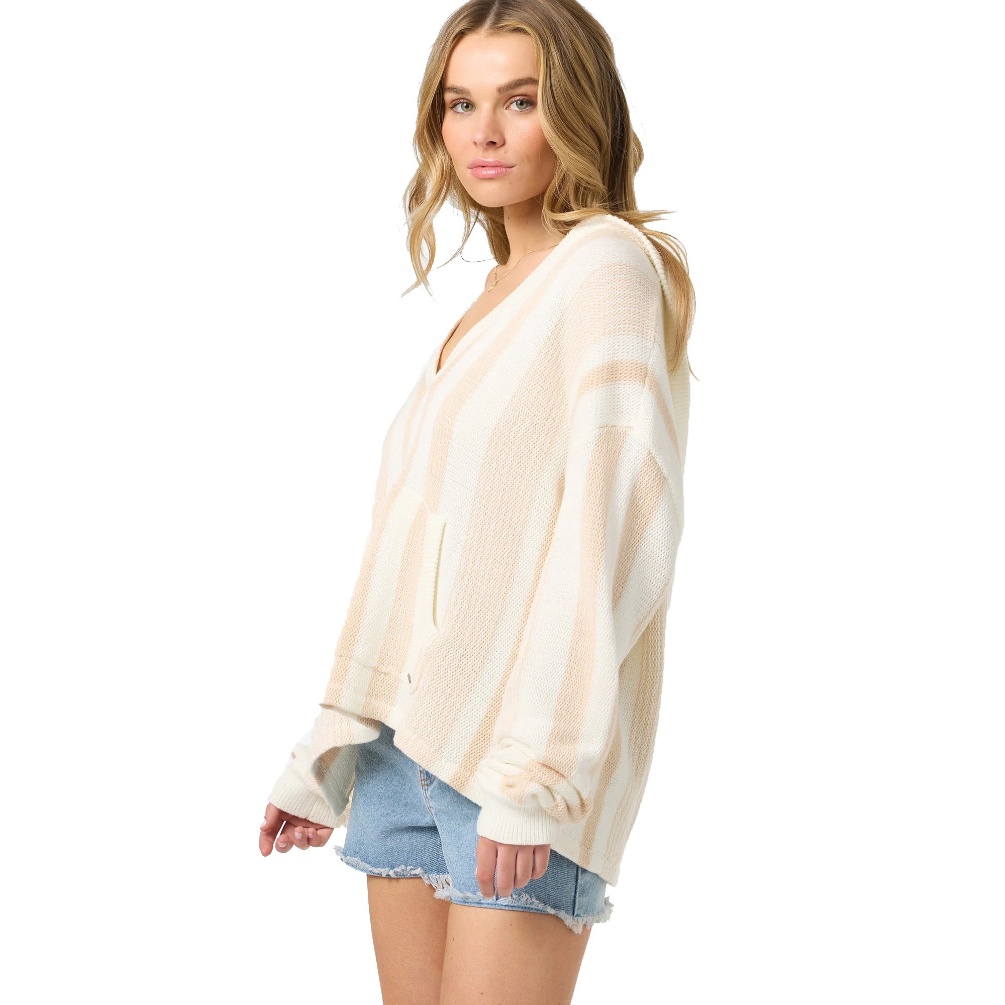 A cozy hooded knit sweater made for easy layering.