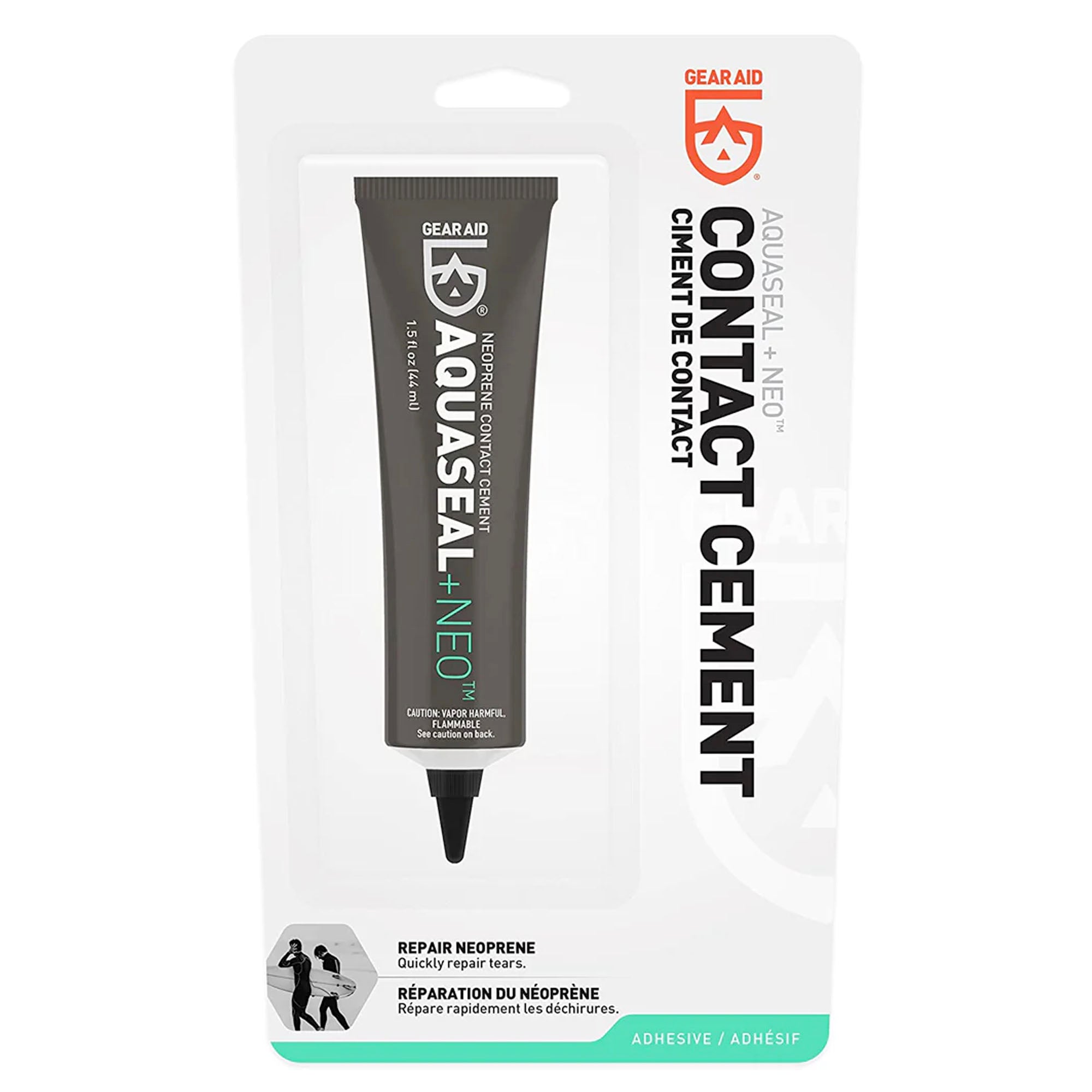 Wetsuit repair is simple and quick with Aquaseal NEO. Previously known as Seal Cement, this black contact cement is formulated to permanently bond with neoprene and other coated materials. With this flexible liquid adhesive, repairing neoprene gear can be done within half an hour. Apply to waterproof waders, gloves, booties, and spray skirts by the water. Or re-seal a leaky gasket at home. When rips and tears happen, use this contact cement to repair stretchy, high-performance fabrics and protect it from abrasions. Before venturing out to that favorite fishing hole or dive spot, bring Aquaseal NEO along for unexpected repairs and save that expensive gear.
