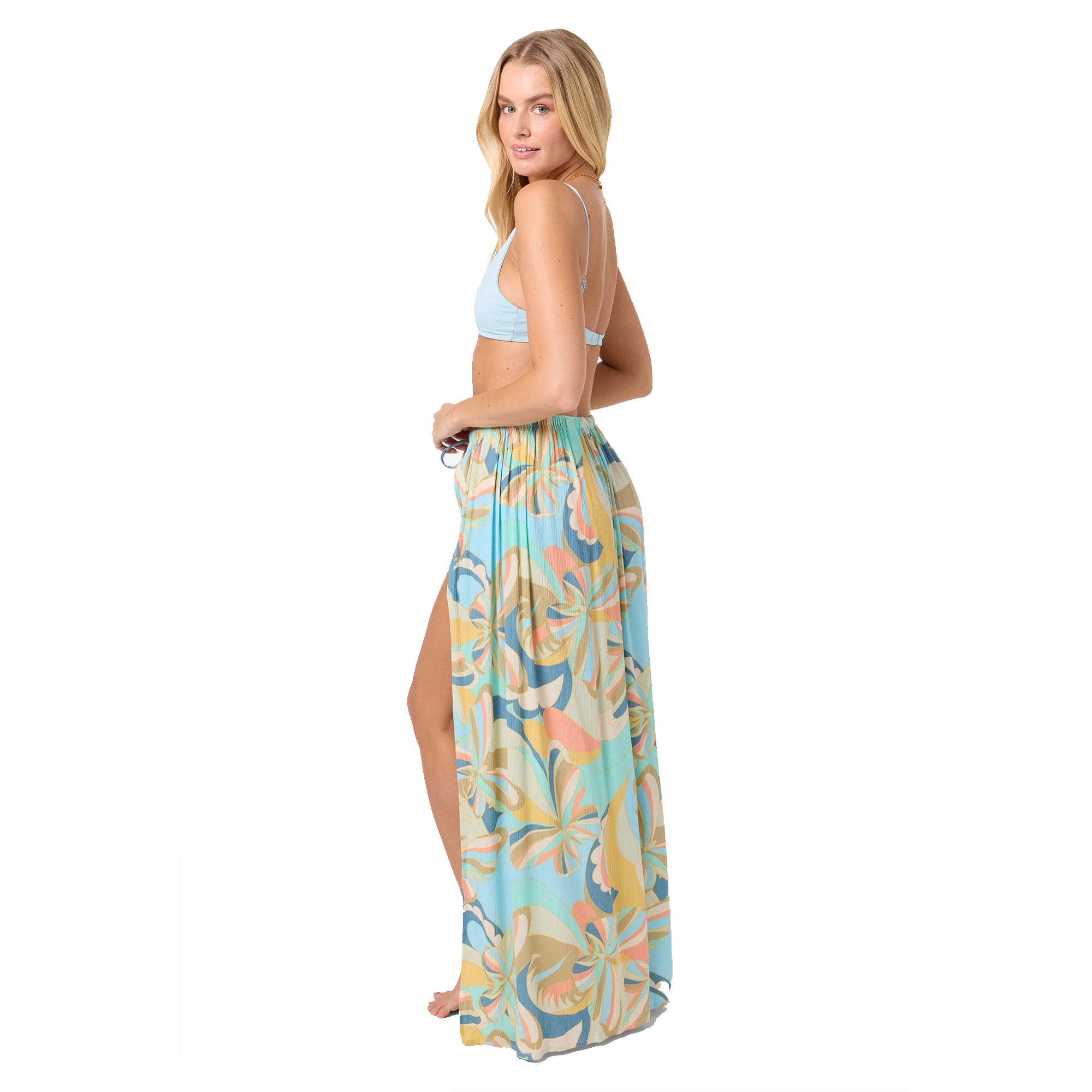 A breezy cover-up skirt to pair with your bikini or favorite top. It features a tassle drawcord and slits at the thigh.